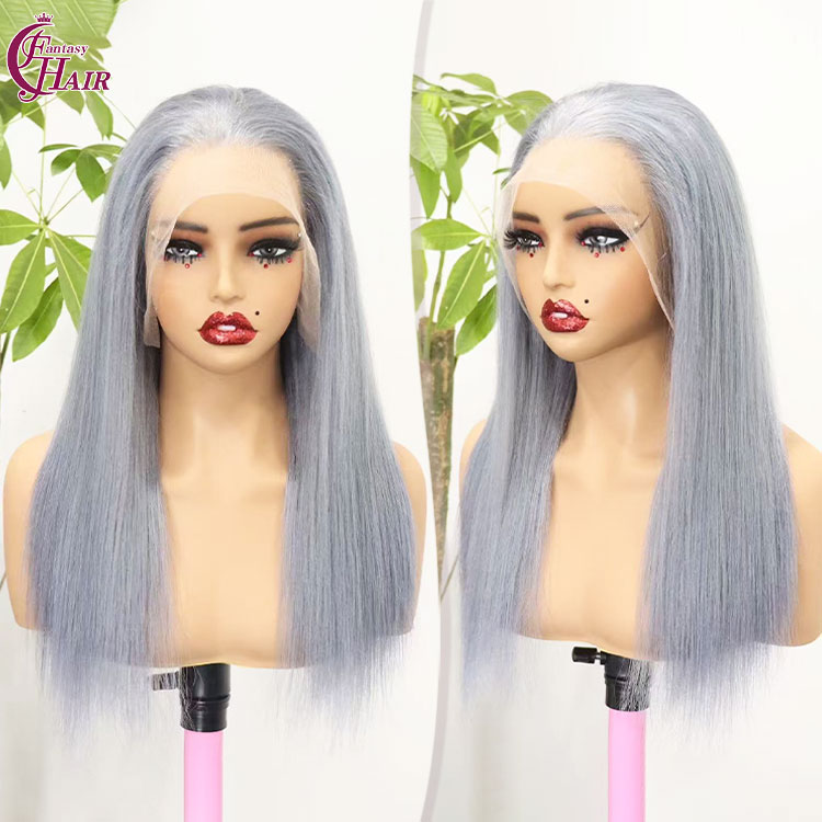 FH dyed gray 13×4 lace frontal straight human hair wig factory supply