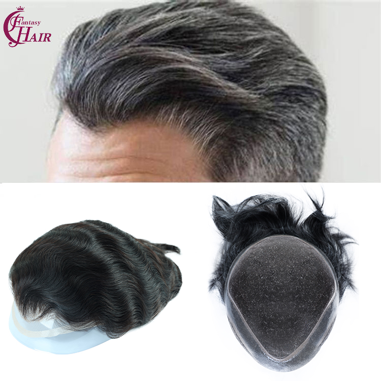 FH lace+pu+mono toupee for man human hair #1B20 french natural wave toupee