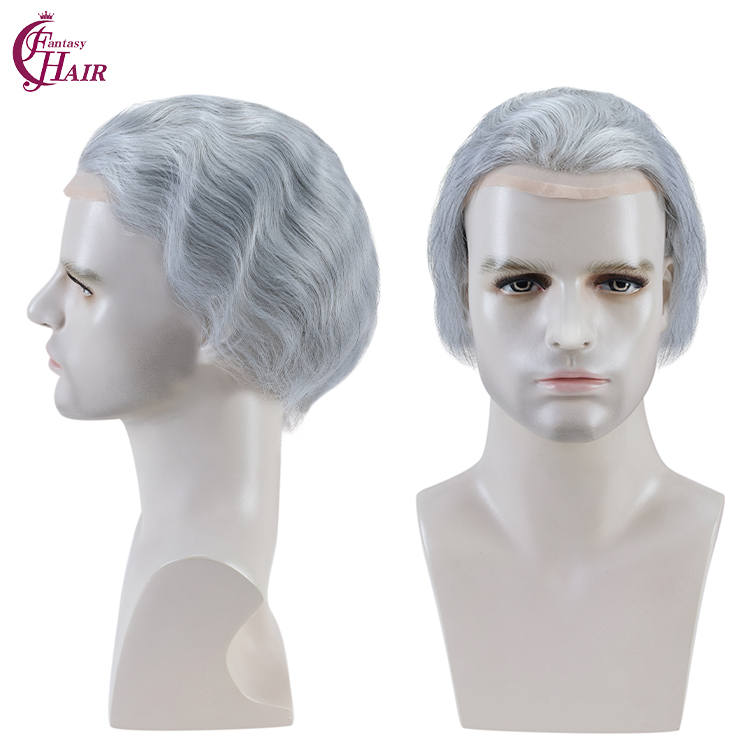 FH lace+pu+mono toupee for man human hair #1B90 grey french natural wave toupee
