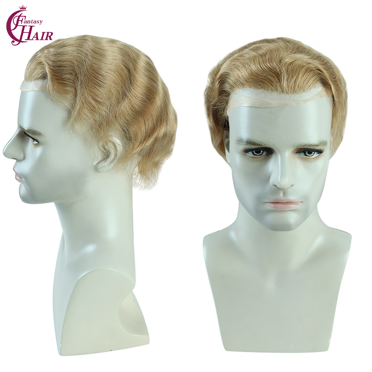 FH lace+pu+mono toupee for man human hair #21 color french natural wave toupee