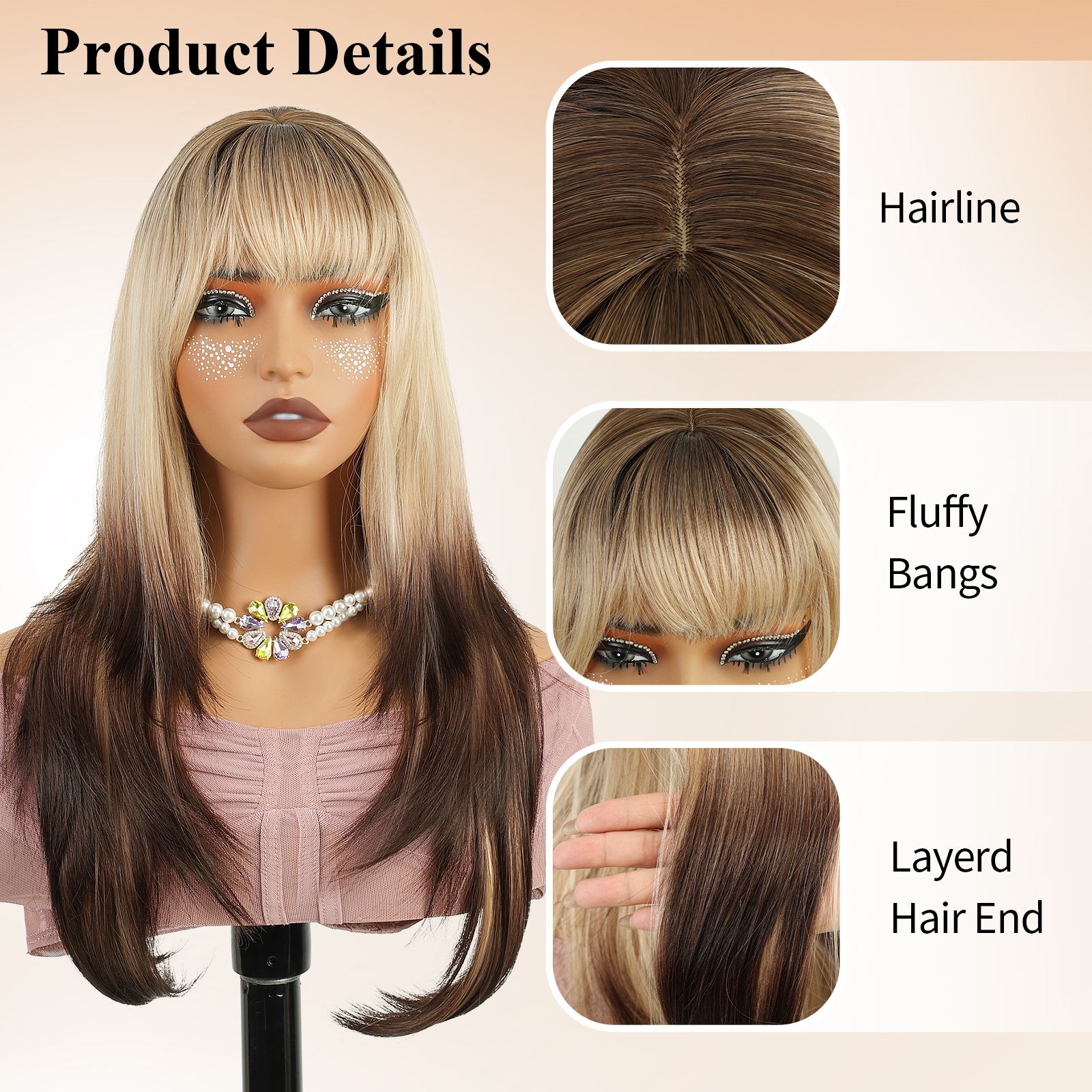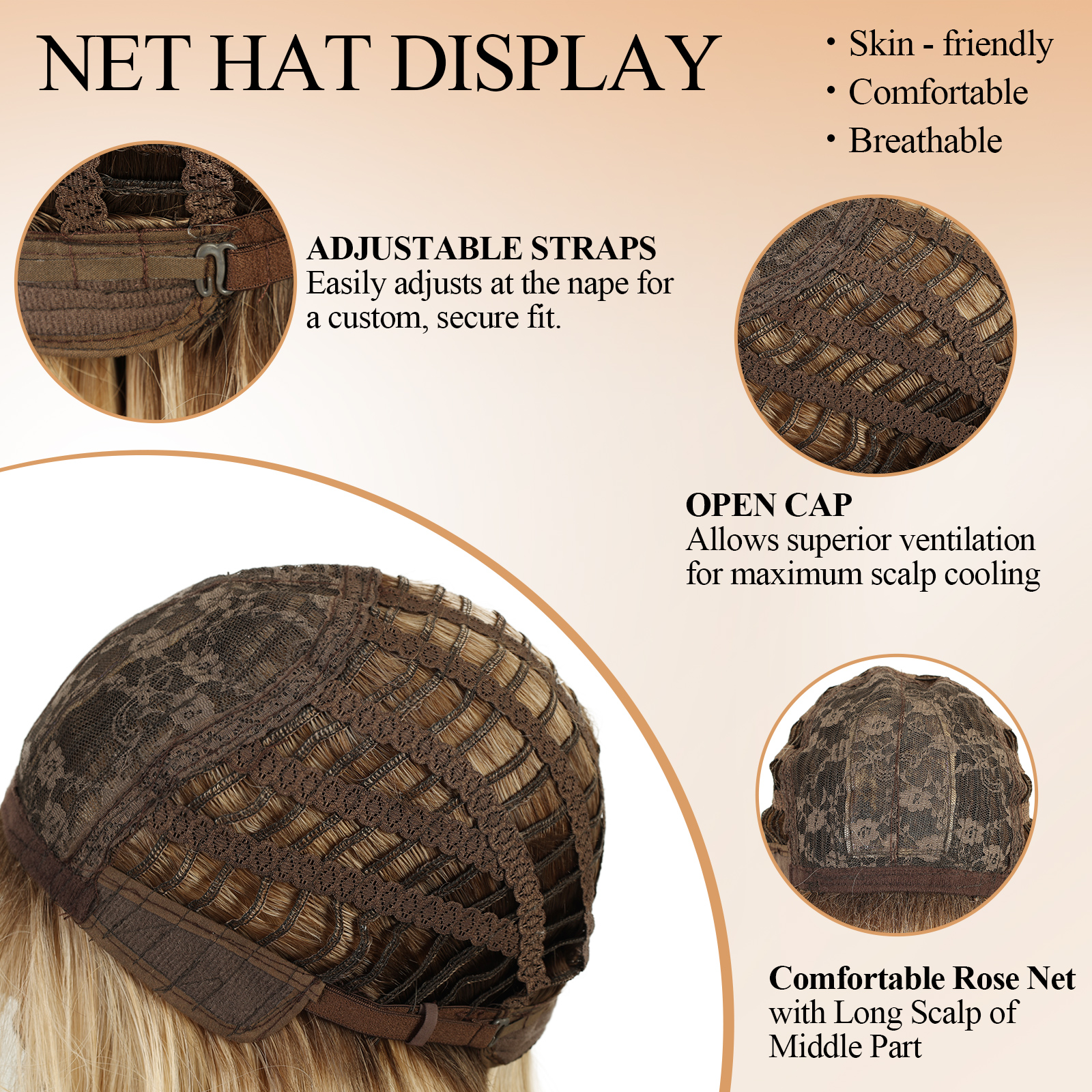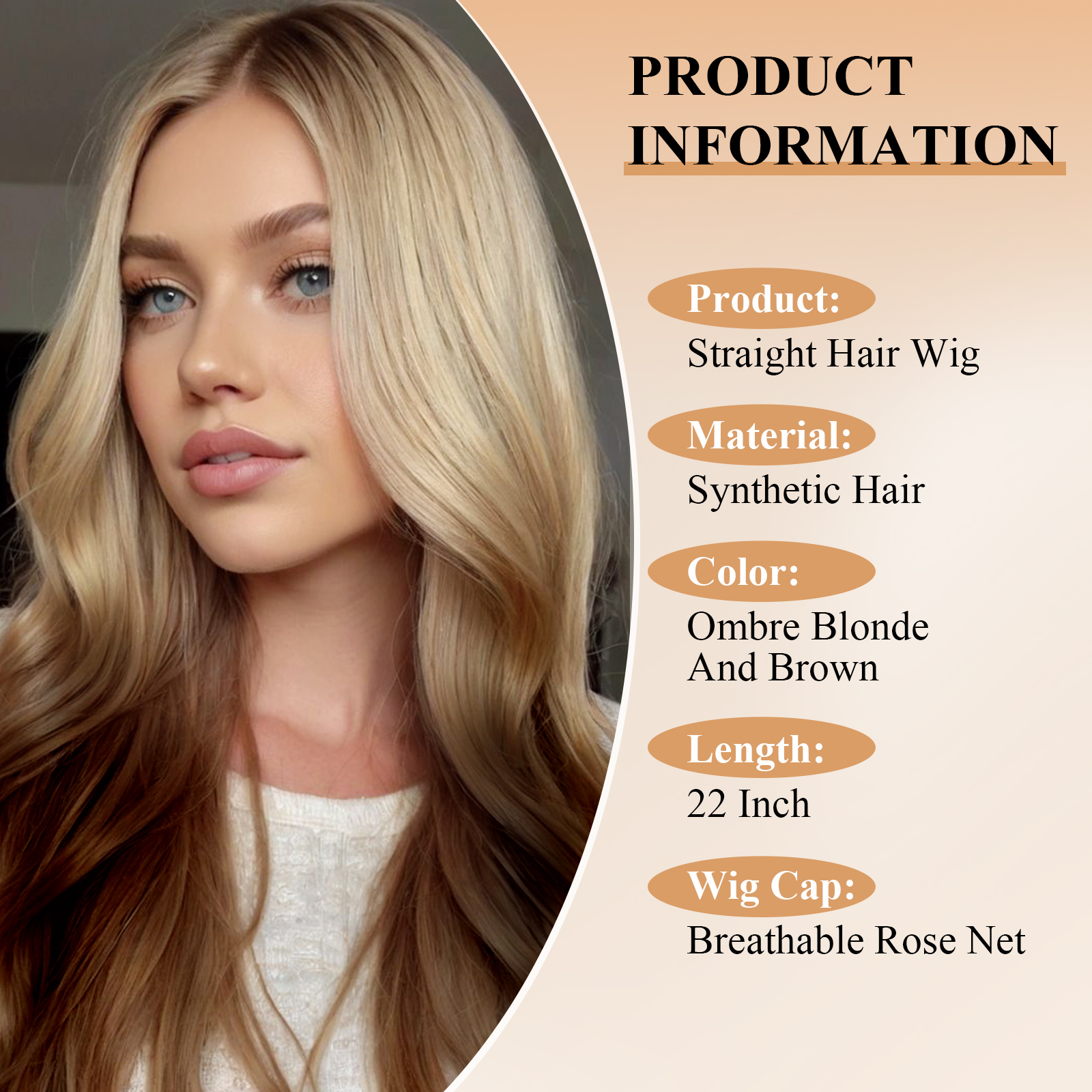 FH Wholesale P15913 High Quality Ombre Blonde And Brown Wigs Synthetic Hair Rose Net-22inch
